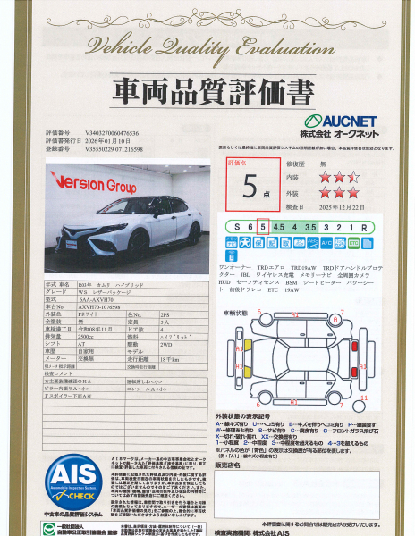 【AIS車両品質評価書付】