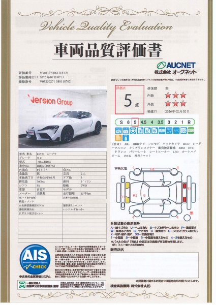 【AIS車両品質評価書付】