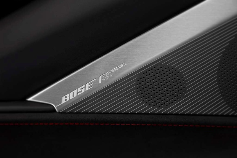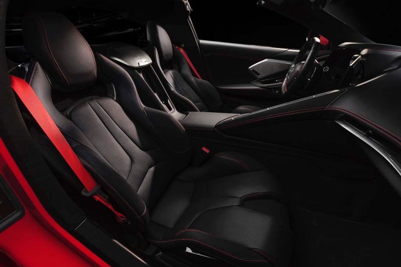 Custom Interior Combination Jet Black with Adrenaline Red seats, Napa leather seating surfaces with perforated sueded microfiber inserts