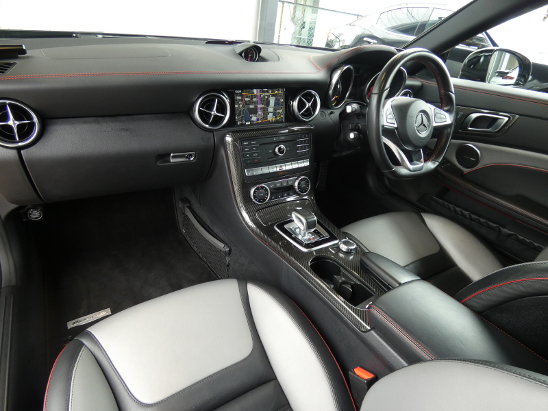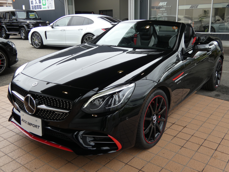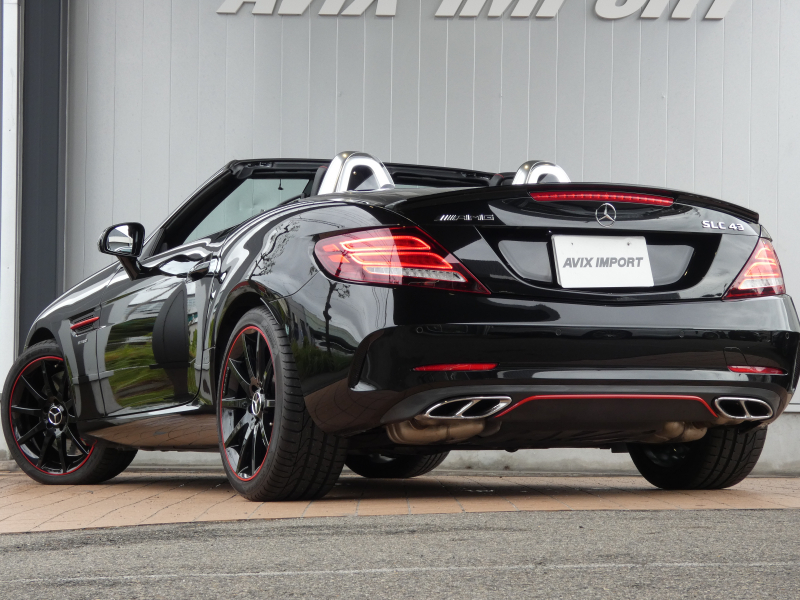 AMG SLC SLC43 レッドアートエディション 特別仕様車 RSP ブラック/シルバーパールレザー カーボンインテリア シートヒーター マジックスカイコントロールパノラミックバリオルーフ 純正ナビ地デジBカメラ ハーマンカードン レッドキャリパー 専用18AW(ブラック) 禁煙 正規D車
