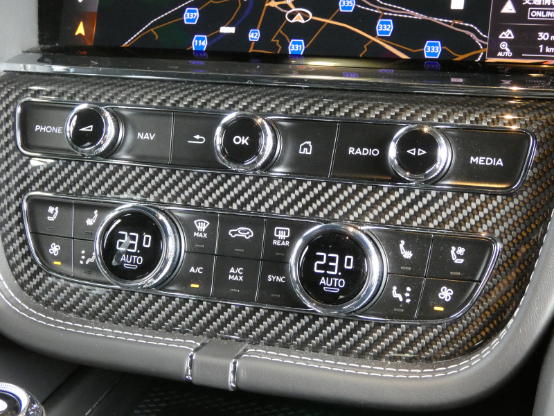 ★フル装備 ブラックラインスペック ツーリングスペック(アダプティブクルーズコントロール・ベントレーセーフガードプラス・ヘッドアップディスプレイ・レーンアシスト・ナイトビジョン・トラフィックアシスト)シティスペック(パークアシスト・トップビューカメラ・歩行者警告・シティセーフガード) サンシャインスペック(後席サイドウィンドウ電動ブラインド・ダブルサンバイザー) フロントシートコンフォートスペック(20WAY調整機能付きシート・ベンチレーション・マッサージ機能) 5シートコンフォートスペック カーボンファイバーインテリアトリム ベントレーダイナミックライド 可変ダンピングコントロール付エアサスペンション ESP オフロード機能 「Azure」エクステリアバッジ パノラミックガラスルーフ ソフトクローズドア ハンズフリーテールゲート ダイヤモンドキルティング(ドア&シート) ベントレーアナログクロック ベントレーセーフガード マトリックスLEDヘッドライト ヒルディセントコントロール ワイヤレススマートフォンチャージャー 4ゾーンオートエアコン 12V電源ソケット 電動パーキングブレーキ ブラックブレーキキャリパー エアイオナイザー 10.9インチタッチスクリーン アンドロイドオート&アップルカープレイ対応 22インチ5スポークディレクショナルアロイホイール(ブラック塗装) LEDウェルカムランプ デジタルTVチューナー ステアリングヒーター 電子制御8速AT V型8気筒ICツインターボ 左ハンドル 正規ディーラー車