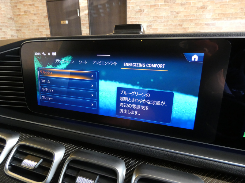 ナッバレザーシート ファブリックルーフライナー ダブルサンバイザー 3列目シート アンビエントライト AMGカーボンファイバーインテリアトリム AMGパフォーマンスステアリング(ナッパレザー/DINAMICA) レザーARTICOダッシュボード AMGイルミネーテッドステップカバー