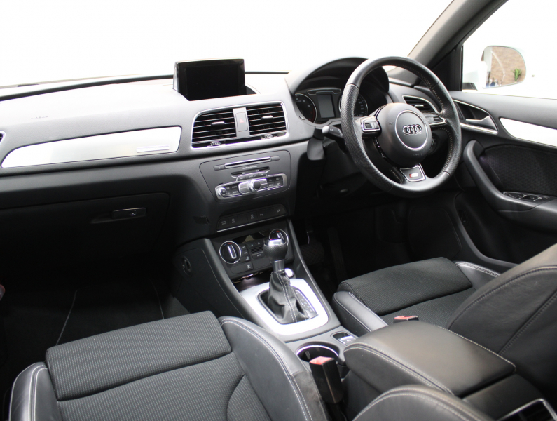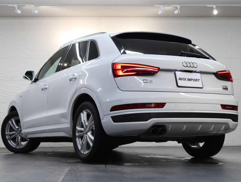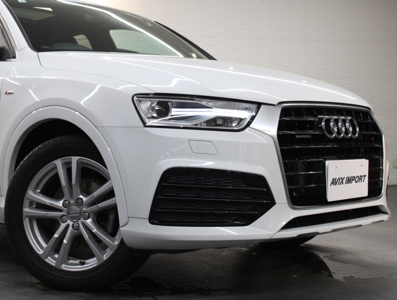 使い勝手の良い4WD!! もちろん事故歴ありません!! 綺麗な外装色グレイシアホワイトにSライン専用エクステリア&専用18インチアルミホイールが迫力あるエクステリアを演出!! 使用感はとても少なく禁煙の室内はお洒落なブラックハーフレザーシートに解放感溢れるパノラマサンルーフに加えスタイリッシュなマイクロメタリックシルバートリムの組み合わせ!! 使い勝手の良い純正MMIナビ・地デジチューナーに加え、運転をサポートするアウディパーキングシステムリアビューカメラも装備!! さらには便利なアドバンスドキーシステムやパワーシート、ヒルディセントアシストも完備!! 2.0L 直列4気筒TFSIエンジンに7速Sトロニックやスタートストップシステムにより燃費向上を実現!! Q3 4WDモデルをお探しの方はお急ぎください!!