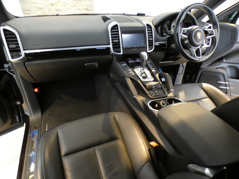 洗練された後期型プラグインハイブリッド!! 人気のジェットブラックメタリック!! 安心の右ハンドル&正規ディーラー車!! 取説・記録簿付 もちろん事故歴ありません SUV特有の使用感は少なく心地よい禁煙の室内は開放感あるガラススライディングルーフに高級感漂うブラックレザーインテリア&快適なシートヒーターが完備!! バイキセノンヘッドライト(PDLS付)&アダプティブクルーズコントロール搭載!! 純正SDナビ・地デジ・リアビューカメラ・ETC&PAS&オートマチックテールゲート&PASM&純正18インチホイール等豪華装備満載です!! 品質・価格共に自信があります!! カイエンS E-ハイブリッドをお探しの方は是非お急ぎ下さい!!