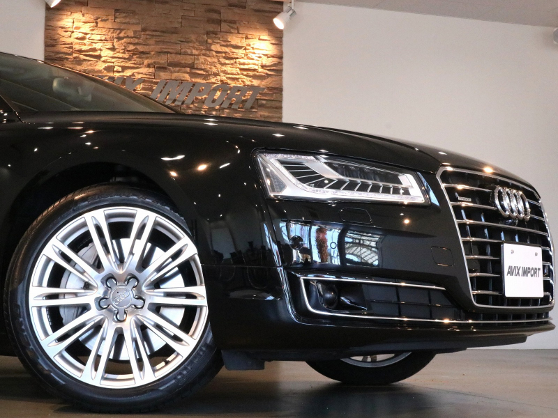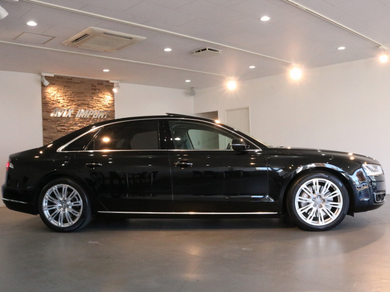 洗練された後期型!! 豪華装備ロングボディ!! 取説・記録簿付 事故歴ありません!! 人気の外装色ミトスブラックに純正20インチアルミホイール&迫力のマトリクスLEDヘッドライト付!! 使用感は少なくフルレザーパッケージの室内は落ち着いたブラックレザーシートにロングボディならではの快適な全席シートヒーター&ベンチレーター&マッサージ機能、コンフォートシート、リアシートエンターテイメント、4ゾーンエアコンも完備され開放感有るガラスサンルーフが装備!! ヘッドアップディスプレイがオプション装備され、使い勝手の良いアドバンストキーや便利なパワークロージングドア&オートマチックトランクリッドが完備され運転操作をサポートするACC(アダプティブクルーズコントロール)・サイドアシスト&ALA(アクティブレーンアシスト)やサラウンドビューカメラ&パーキングエイドと豪華装備満載です!! DOHC V型8気筒インタークーラー付ターボチャージャーエンジン&電子制御8速AT、クワトロシステム&アウディドライブセレクトにより走りのシチュエーションを選ばない卓越したパフォーマンスを実現!! 実用性と先進性を兼ね揃えた人気車輌をお届け致します!!