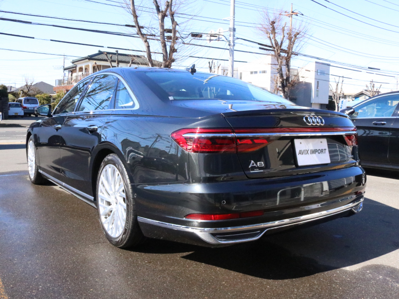ワンオーナー 取説・記録簿付 事故歴ありません!! 希少な外装色ヴェスヴィオグレーメタリック&純正20インチアルミホイール付!! マトリクスLEDヘッドライトにアウディレーザーライト&OLEDリアライトが装備されたレーザーライトPKGが完備!! 開放感有るパノラマサンルーフ付きの室内は鮮やかなナツメグブラウンレザーシートに快適なシートヒーター&ベンチレーター&前席マッサージ機能、4ゾーンエアコンに加えてコンフォートパッケージならではのリアシートヒーターやシートリモート、インディビジュアル電動リアシート&ランバーサポート、マトリクスLEDインテリアライト&ミュージックインターフェイスリア、さらにはマルチカラーアンビエントライトライティングがオプション装備!! 使い勝手の良いアドバンストキーや便利なパワークロージングドア&オートマチックトランクリッドが完備され運転操作をサポートするサラウンドビューカメラ&パーキングエイド、ヘッドアップディスプレイ&アダプティブドライブアシストにアシスタンスパッケージもオプション装備!! DOHC V型8気筒インタークーラー付ターボエンジンに48Vリチウムイオンバッテリー&マイルドハイブリッドや電子制御8速AT&クワトロシステム、さらにはオプションのダイナミックオールホイールステアリングが融合し走りのシチュエーションを選ばない卓越したパフォーマンス実現!! 実用性と先進性を兼ね揃えた人気車輌をお届け致します!!