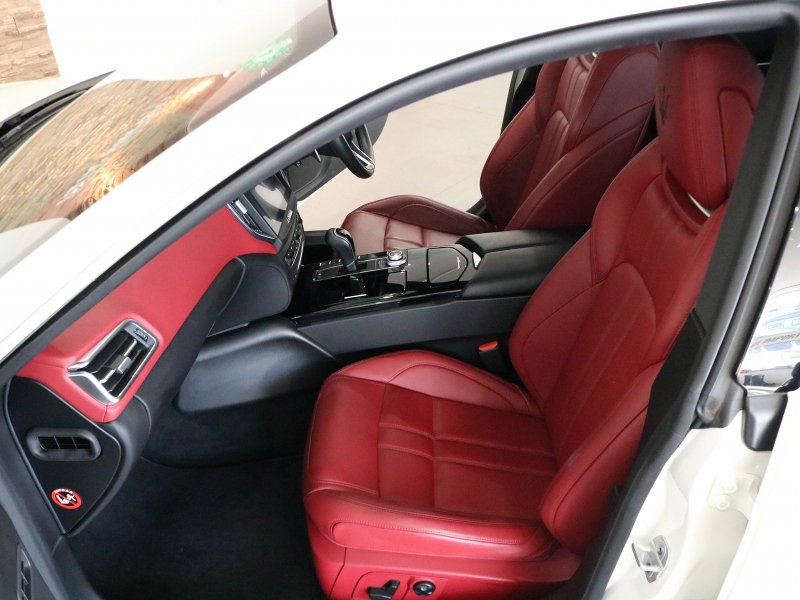 安心の右ハンドル、正規ディーラー車!! 取説・記録簿付 事故歴ありません!! 綺麗な外装色ビアンコにグランスポーツ専用エクステリア&純正20インチアルミホイール、レッドペイントブレーキキャリパーがお洒落なエクステリアを演出!! 開放感有るガラスサンルーフ付の室内は鮮やかなレッドレザースポーツシートにお洒落なヘッドレストトライデントステッチが施され、ツーリングパッケージならではの快適なシートヒーターやイージーエントリーシステム&電動チルト/テレスコピックステアリング、キックセンサー付電動トランクが装備!! 使い勝手の良い純正ナビに運転操作をサポートするパーキングセンサーやドライバーアシスタンスパッケージ(サラウンドビュー&トラフィックサイン)、ACC&BSA&LKAも完備!! 3L V型6気筒ツインターボエンジン&8速ATにスカイフックサスペンションが相まって如何なる状況でもストレスの無いドライビングをご堪能できます!!