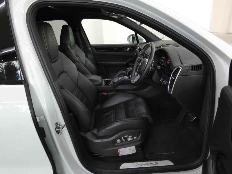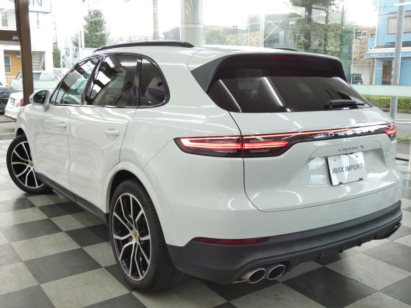 安心の右ハンドル、正規ディーラー車!! 取説・記録簿付 もちろん事故歴ありません!! 綺麗な外装色キャララホワイトにエクステリアパッケージ(ハイグロスブラック)&21インチエクスクルーシブデザインホイール、加えてLEDマトリックスヘッドライトが装備されお洒落なエクステリアを演出!! SUV特有の使用感はとても少なく心地良い禁煙の室内は落ち着いたブラックレザーインテリアに快適なシートヒーター,、パノラマサンルーフ付!! 高解像度12.3インチタッチスクリーンを採用し、より一層使い勝手の良くなったPCMナビ(ポルシェコミュニケーションマネジメントシステム)、便利なコンフォートアクセスにオートマチックテールゲート、運転操作をサポートするサラウンドビュー&PAS(パークアシストシステム)、ACC(アダプティブクルーズコントロール)&LCA(レーンチェンジアシスト)が装備!! ドライビングプレジャーを掻き立てるスポーツクロノパッケージに340馬力を発揮するV6ターボエンジンと8速AT&PASMが相まって、ストレスの無いドライビングを可能とします!! カイエンSをお探しの方は是非お急ぎ下さい!!