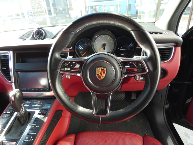 ポルシェ マカン S PDK スポーツクロノPKG 赤/黒革 シートヒーター&ベンチレーション 3ゾーンAC 14wayパワーシート 純正ナビ地デジ BOSE バックカメラ&パークセンサー ポルシェエントリードライブキセノンヘッドライト パワーテールゲート PASM RSスパイダーデザイン20AW