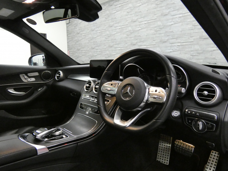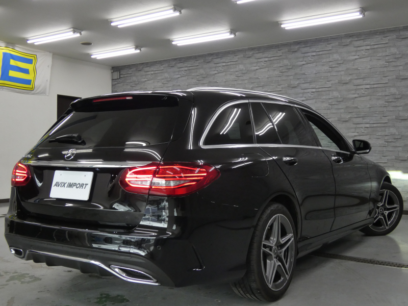 メルセデスベンツ Cクラス C220dステーションワゴンAVG AMGライン 後期型 パノラミックSR 黒革 シートヒーター 純正ナビ 地デジ&CarPlay Bカメラ&PTS レーダーセーフティPKG マルチビームLED 電動テールゲート エアサス 純正18AW 禁煙車