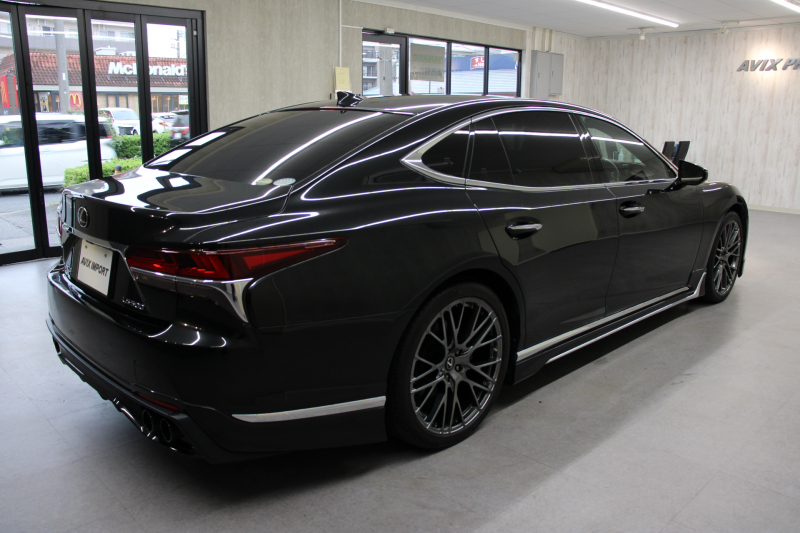レクサス LS LS500 EXECUTIVE モデリスタエアロ(F/S) TRDエアロ(リア) TRDスポーツマフラー 黒革 ムーンルーフ マークレビンソン 純正リアエンタ 三眼LEDヘッドライト ナビ TV 全方位カメラ クリアランスソナー シートヒーター ベンチレーション リラクゼーション デジタルインナーミラー ACC TRD21インチAW