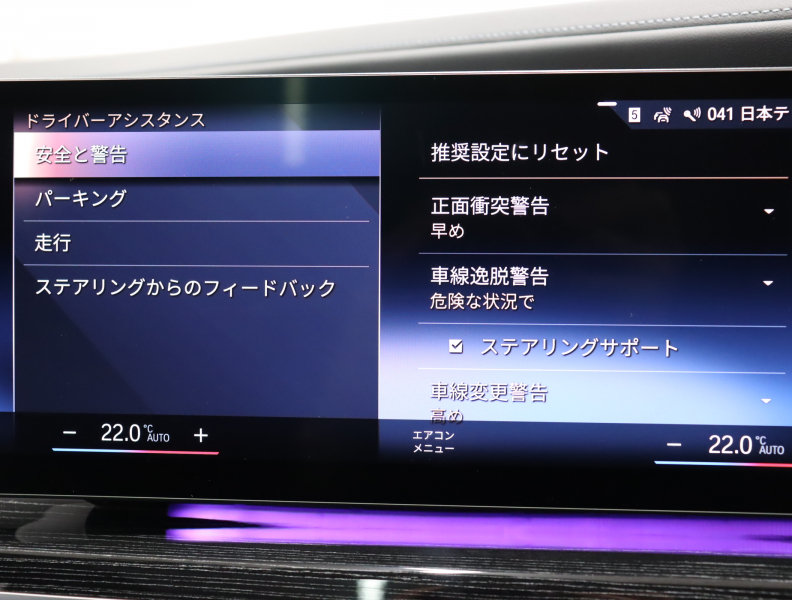 ●ドライビング・アシスト・プロフェッショナル: ー 高速道路渋滞時ハンズ・オフ・アシストー ACC/アクティブ・クルーズ・コントロール(ストップ&ゴー機能付)ー ステアリング&レーン・コントロール・アシストー レーン・ディパーチャー・ウォーニング(車線逸脱警告システム)ー レーン・チェンジ・アシスト ー レーン・チェンジ・ウォーニング ー レーン・キーピング・アシスト (アクティブ・サイド・コリジョン・プロテクション付) ー クロス・トラフィック・ウォーニング(フロント&リヤ) ー クロスロード・ウォーニング ー 前車接近警告機能 ー 後車衝突警告機能 ー 衝突回避・被害軽減ブレーキ(事故回避アシスト付)ー スピード・リミット・インフォ (トラフィック・サイン・アシスト〔速度制限認識〕) ー エマージェンシー・ストップ・アシスト ●DSC/ダイナミック・スタビリティ・コントロール(拡張機能付*1 )●DTC/ダイナミック・トラクション・コントロール●CBC/コーナリング・ブレーキ・コントロール●DBC/ダイナミック・ブレーキ・コントロール●ABS/アンチロック・ブレーキング・システム●アクティブ・プロテクション●サイド・ドア・ビーム●パーキング・アシスト・プロフェッショナル: ー アクティブPDC/パーク・ディスタンス・コントロール ー PDC/パーク・ディスタンス・コントロール (フロント&リヤ、ビジュアル表示機能付) ー パーキング・マニューバー・アシスト/ 登録済駐車経路 自動操作アシスト機能 ー パーキング・アシスト(並列・縦列) ー リバース・アシスト・プロフェッショナル/ 後退時ステアリング・アシスト機能 ートップ・ビュー+3Dビュー ー サイド・ビュー・カメラ ーリヤ・ビュー・カメラ(予想進路表示機能付)●BMW ドライブ・レコーダー●誤発進抑制制御●リモート・パーキング●BMWヘッドアップ・ディスプレイ●エアバッグ●サイド・エアバッグ●カーテン・ヘッド・エアバッグ(フロント&リヤ)●助手席エアバッグ・カットオフスイッチ●フロント・シートベルト(3点式、シートベルト・フォース・リミッター付)●リヤ・シートベルト(3点式)●ISOFIXチャイルド・シート・アタッチメント(リヤ)●イモビライザー●リモート・コントロール・キー(パーソナル・プロファイル・メモリー機能付)●BMWデジタル・キー●タイヤ空気圧モニタリング・システム ●BMWコネクテッド・ドライブ・プロフェッショナル: ー BMW SOSコール ー BMWテレサービス ー BMWドライバー・サポート・デスク(3年間) ー BMWリモート・サービス(3年間) ー コネクテッド・ドライブ・サービス ー Apple CarPlay プレパレーション
