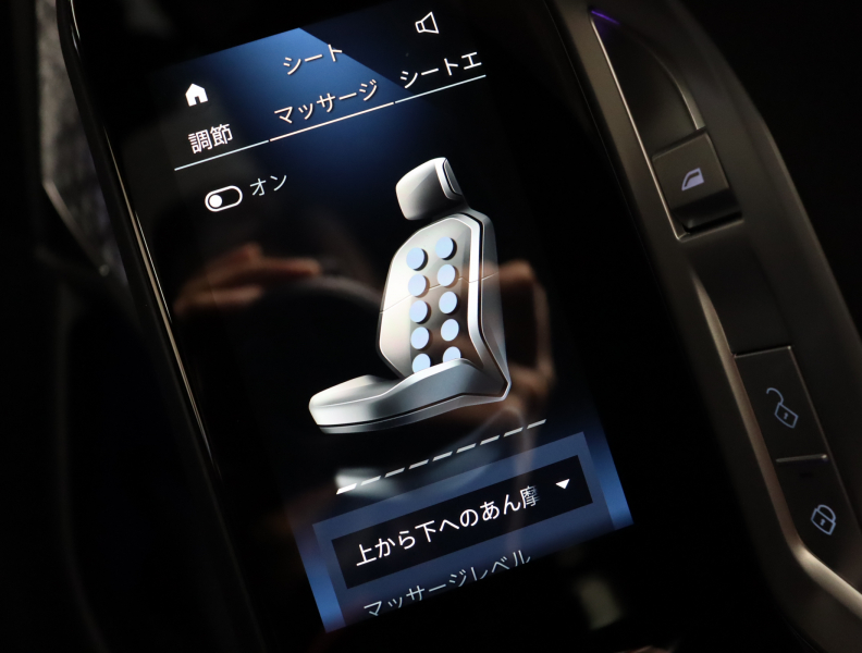 ●BMWライブ・コックピット: ー BMWカーブド・ディスプレイ 12.3インチ マルチ・ディスプレイ・メーター・パネル ー BMWカーブド・ディスプレイ 14.9インチ ワイド・コントロール・ディスプレイ(タッチ・パネル機能付) ー HDDナビゲーション・システム(VICS 3メディア対応)●BMWインテリジェント・パーソナル・アシスタント(AI音声会話システム)●ワイヤレス・チャージング●パーソナルeSIM●ハンズフリー・テレフォン・システム●ITSスポット対応DSRC車載器(ルーム・ミラー内蔵、ETC機能付)●電動式チルト&テレスコピック・ステアリング・コラム●クラフテッド・クリスタル・フィニッシュ●BMWインタラクション・バー●オーディオ・ビジュアル・システム: ー ラジオ(AM・FM)ー 地上デジタルTVチューナー●USBオーディオ・インターフェイス●トラベル&コンフォート・システム●4ゾーン・オートマチック・エア・コンディショナー (ナノ・ファイバー・フィルター〔花粉除去機能〕付): ー 運転席&助手席 独立温度調節機能 ー 後席左右 独立温度調節機能 ー パーキング・ベンチレーション ーリモート・クライメート・コントロール機能●シート:ー マルチファンクション・シート(運転席&助手席、運転席メモリー機能付) ー フロント・アクティブ・ベンチレーション・シート ー フロント・マッサージ・シート ー シート・ヒーティング(フロント&リア)●スルーローディング・システム●エクステンド・レザー・メリノ・シート●センサテック・フィニッシュ・ダッシュボード●アンソラジット・ルーフ・ライニング●ベロア・フロア・マット●リーディング・ライト●リヤ・サイド・ウインドー・ローラー・ブラインド(電動)●クライメート・コンフォート・ガラス(赤外線反射ガラス:全面)●自動防眩ルーム・ミラー●照明付バニティ・ミラー(フロント)●照明付バニティ・ミラー(リヤ)●照明付グローブ・ボックス●ドア・シル・プレート●フロント・センター・アームレスト(収納ボックス付)●リヤ・センター・アームレスト(収納ボックス付)●カップ・ホルダー(フロント&リヤ)●ストレージ・パッケージ: ー Type-C対応USBソケット●Bowers & Wilkins サラウンド・サウンド・システム(655W、20スピーカー、9チャンネル・サラウンド