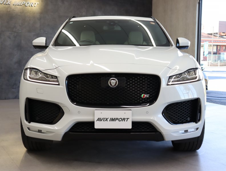 ジャガー F-PACE S セレクトパック ブラックパックS 黒×白革 Meridianサウンド 純正ナビ TV 360°カメラ CarPlay ステアリングヒーター シートヒーター ベンチレーション リア電動リクライニング ACC LKA パワーテールゲート LEDヘッドライト 20インチAW