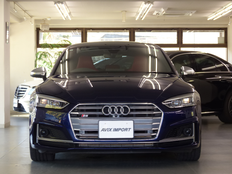 セダンの快適性とクーペの持つエレガントさ、アバントの優れた実用性を兼ね備えたS5スポーツバック!! 安心の右H!! 禁煙車 取説・記録簿付き もちろん修復歴御座いません!! DOHC V型6気筒3.0Lターボエンジンを搭載!! 最高出力354PS(カタログ値)のパワーを発生させストレス無くドライビングをご堪能できます!! S5専用エアロ(F,S,R)と5スポークSデザインコントラストグレーポリッシュト19インチアルミホイールがスポーツバックの美しさを際立たせ、8速ティプトロニックトランスミッション・ダンピングコントロール付Sスポーツサスペンション・リアディファレンシャルを標準装備し、さらに俊敏なハンドリングとスポーティーな走りに磨きをかけております!! アイドリングストップ機構により燃費向上を実現!! 外装色は綺麗なナバーラブルーに内装はオプションのSロゴ入りダイヤカットマグマレッドナッパレザースポーツシート&カーボンインテリアパネルの組み合わせ!! タッチパッドと高解像度8.3インチ大型モニターを備えるMMIにより直感的な操作を可能とし、快適なドライビングをご堪能頂けます!! 安全装備のプレセンスシティ・プレセンスリア・サイドアシスト・アクティブレーンアシストに加えアダプティブクルーズコントロールが装備され安心のドライブをサポート致します!! 上級グレードならではのマトリクスLEDヘッドライト・前席シートヒーター・3ゾーンオートマチックエアコンディショナーの他、オプションのパノラマサンルーフやアシスタンスパッケージ(サラウンドビューカメラ・パーキングアシスト)、バーチャルコックピット等、豪華装備充実の1台!! 品質・価格共に絶対の自信があります!! Audi S5スポーツバック プレセンス&レザー&アシスタンスパッケージをお探しの方は是非ご覧下さい!!