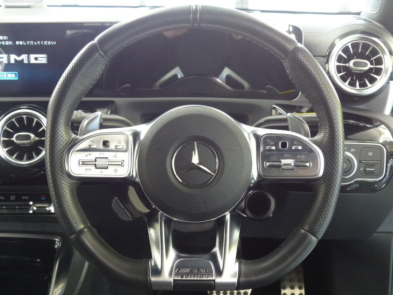 緊急通報システムやスマートフォンで操作するリモートパーキングアシストを含むMercedes me connect搭載!! 専門店ならではの1台!! A35 4MATICをベースに特別仕様を施したエディション1!! 特別限定600台!! 安心の右ハンドル!! 禁煙車 取説・記録簿付き もちろん修復歴御座いません!! A35 4MATICならではのAMGフロントスポイラー・サイド&リアスカート・AMGエグゾーストシステムをベースに、特別仕様車ならではのAMGナイトパッケージ(ハイグロスフロントスプリッター&フロントバンパー&サイドスカート&エグゾーストエンド等)やエアロダイナミックパッケージ(エディション1専用フロントバンパー・ハイグロスブラックリアウィング&リアエプロン&リアディフューザー)・ハイシーン/マットテックゴールド19インチAMGマルチスポークアルミホイールがダイナミックなスタイリングを演出!! 最高出力306PS(カタログ値)を発生する2リッター DOHC直列4気筒直噴ターボエンジンを搭載したモンスターマシン!! さらにはメルセデスが数々の新技術を採用した新開発の電子制御7速AT(7G-DCT)を、Mercedes-AMG用に最適化した専用7G-DCTを搭載し、ダイナミックで快適な走りを実現!! 大出力に対応すべくAMGサスペンションや専用強化ブレーキシステム等が装備され、圧倒的なパフォーマンスを最大限に引き出して走る歓びを叶えます!! 外装色は綺麗なデニムブルー!! 内装はエディション1ならではの上質なマグマグレー/ブラックレザーDINAMICA AMGパフォーマンスシート&アルミニウムシルバー/ブラックインテリアトリムの組み合わせ!! 前席にシートヒーターが装備され、快適なドライビングが可能となります!! ライト機能も高解像度・高精度のアダプティブハイビームアシストプラス付マルチビームLEDヘッドライトが標準装備!! また室内も視認性に優れた一体型デザインの高精細な2枚のタッチスクリーン付10.25インチワイドディスプレイを採用!! メルセデスが先進技術を投入した安全支援システム・レーダーセーフティーパッケージにアクティブレーンチェンジングアシスト等の新たな機能が加わり、安全運転を全面的にサポートし事故を未然に防いでくれます!! 便利なメモリ付パワーシート、キーレスゴーの他、エディション1ならではの360度カメラシステム・ヘッドアップディスプレイ・AMGパフォーマンスステアリング・アドバンスドサウンドシステム等、豪華装備充実の1台!! 内・外装共にとても綺麗で機関も良好!! 憧れを憧れだけで終わらせないで下さい!! 是非ともこの機会に本物のAMGオーナーに!!