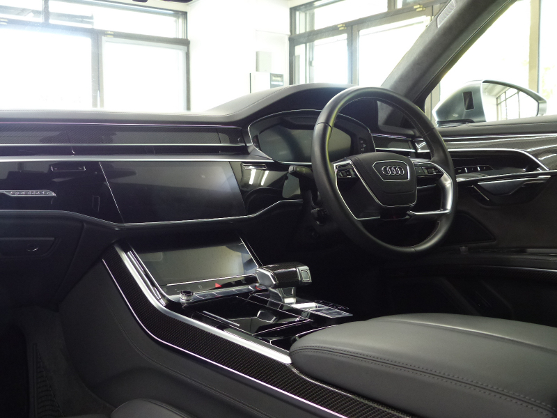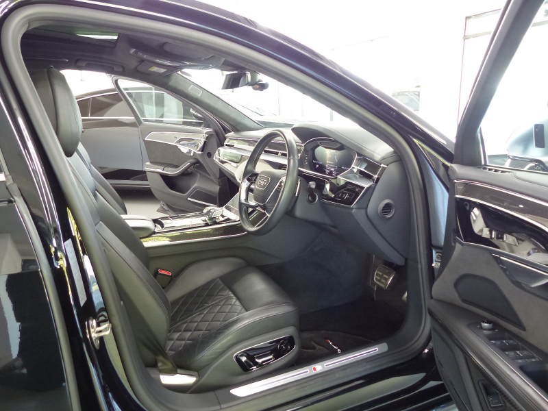 フレキシビリティとパフォーマンスを極め、贅沢に鍛え抜かれたスポーティーなフラッグシップセダンのS8!! 安心の右ハンドル!! 禁煙車 ワンオーナー 取説・記録簿付き もちろん修復歴御座いません!! 最高出力571PS(カタログ値)を発生させるDOHC V型8気筒4.0Lツインスクロール・ツインターボエンジン&48Vのマイルドハイブリッド(MHEV)&電子制御8速ティプトロニックオートマチックトランスミッションを搭載したモンスターマシン!! アウディならではのフルタイム4WDシステム「quattro」に、プレディクティブアクティブサスペンション・リアスポーツディファレンシャルを標準装備され、さらにはダイナミックオールホイールステアリングが俊敏なハンドリングとスポーティーな走りに磨きをかけております!! マイルドハイブリッドシステム&スタートストップシステムにより燃費向上を実現!! シングルフレームグリルデザインやバンパー&ボンネット形状を刷新!! 従来のマトリクスLEDより高精細と高解像度な照射が行えるHDマトリクスLEDヘッドライトの他、ハイビームの照射距離を2倍に拡大するレーザーライトパッケージ(アウディレーザーライト・OLEDリアライト)がオプション装備!! 外装色は人気のミトスブラック!! 内装は高級感漂うブラックバルコナレザースポーツシート&カーボンベクターデコラティブパネルの組み合わせ!! 10.1インチと8.6インチの2つの高解像度タッチディスプレイを備える最新世代のMMIにより直感的な操作を可能とし、ストレスの無いドライビングをご堪能頂けます!! 前席シートヒーター・後席サイド&リアブラインド・オートマチックトランクリッドはもちろんの事、前席ベンチレーション・バーチャルコックピット・サラウンドビューカメラ・パークアシストプラス・ヘッドアップディスプレイが標準装備されております!! アダプティブクルーズコントロール・アクティブレーンアシスト・トラフィックジャムアシストの3つの機能を統合したアダプティブドライブアシストやフロントクロストラフィックアシスト等の安全支援システムも装備されており、安全運転を全面的にサポートし事故を未然に防いでくれます!! さらには快適なステアリングヒーター・後席シートヒーター・前席マッサージ機能や便利なパワークロージングドアはもちろんの事、4ゾーンデラックスオートマチックエアコンディショナーやBang&Olufsen3Dサウンドシステムの他、オプションのパノラマサンルーフやコンフォートパッケージ(リアインディビジュアル電動シート・リアシートリモート・リアミュージックインターフェイス等)・ブラックアルカンターラヘッドライニング・カラードレッドブレーキキャリパー・アシスタンスパッケージ(アダプティブウィンドウスクリーンワイパー・センターエアバッグ)等、上級サルーンに相応しい豪華装備充実の車両となります!! 品質・価格共に絶対の自信があります!! 稀少・Audi S8 ベースグレード 4.0TFSIクワトロ HDマトリクスLEDヘッドライト・アウディレーザーライト&コンフォートパッケージをお探しの方は是非お急ぎ下さい!!