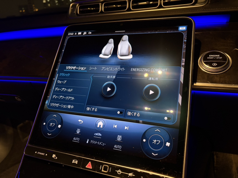 ●メモリー付パワーシート(運転席・助手席)●メモリー付パワーシート(後席)●パワーシート(後席)●トランクスルー機能●指紋認証機能●シートヒーター(運転席・助手席)●シートベンチレーター(運転席・助手席)●シートヒーター(後席)●シートベンチレーター(後席)●ヘッドアップディスプレイ●クライメートコントロール(前席左右独立調整)●MBUXインテリア・アシスタント●12.8インチ有機ELメディアディスプレイ●アンビエントライト●ロードコンバートメントパッケージ●ロードシルプロテクター(ステンレス)●メモリーパッケージ●ウォームコンフォートパッケージ(アームレストヒーター(後席)、アームレストヒーター(前席)、ステアリングヒーター)●MBUX ARナビゲーション●電動ランバーサポート(運転席・助手席)●イルミネーテッドステップカバー●12V電源ソケット