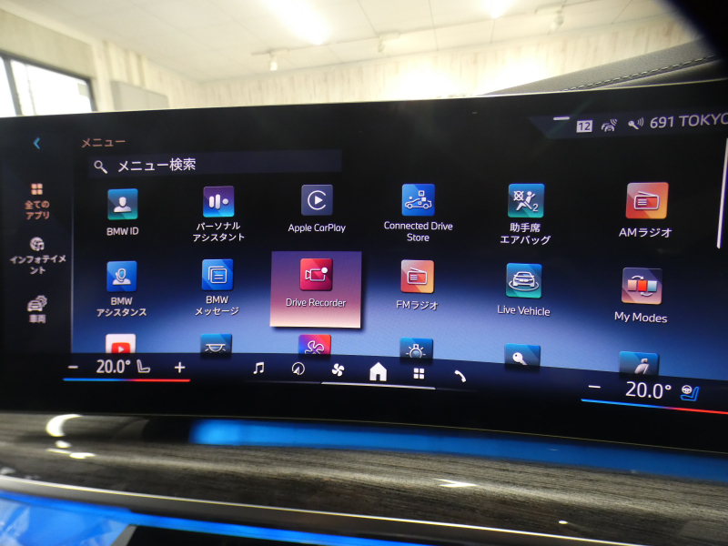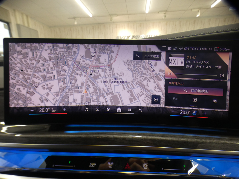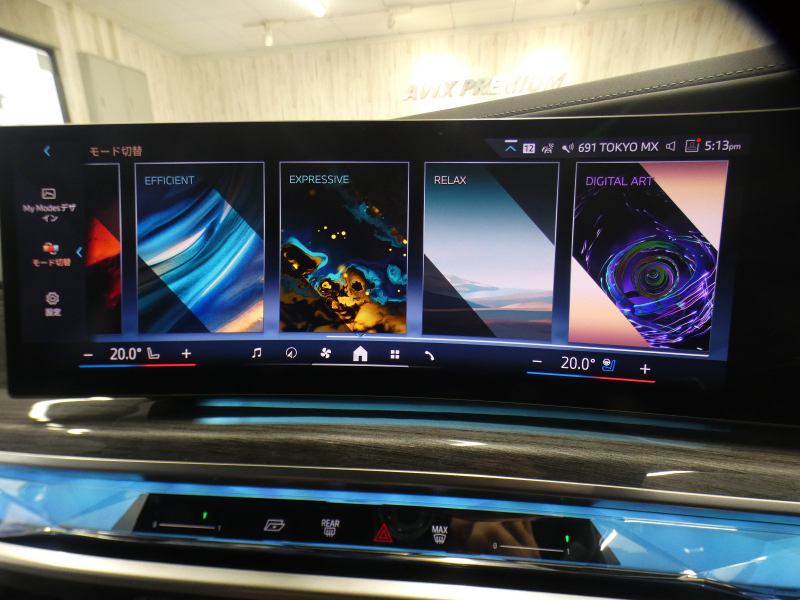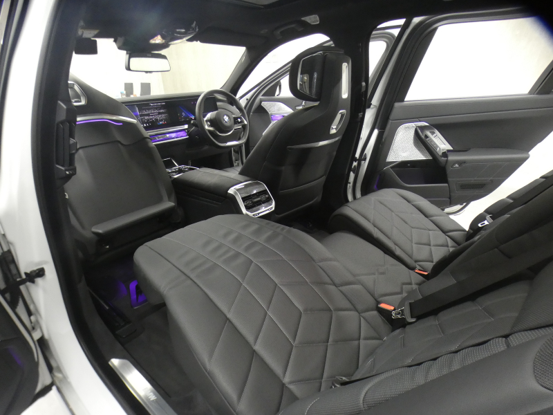 BMWライブ・コックピット(BMWカーブド・ディスプレイ、12.3インチ マルチ・ディスプレイ・メーター・パネル、14.9インチ ワイド・コントロール・ディスプレイ (タッチ・パネル機能付)、HDDナビゲーション・システム(VICS 3メディア対応)、BMWインテリジェント・パーソナル・アシスタント (AI音声会話システム))、ワイヤレス・チャージング、パーソナルeSIM、ハンズフリー・テレフォン・システム、ITSスポット対応DSRC車載器(ルーム・ミラー内蔵、ETC機能付)、電動式チルト&テレスコピック・ステアリング・コラム クラフテッド・クリスタル・フィニッシュ、アンビエント・ライト、BMWインタラクション・バー、オーディオ・ビジュアル・システム(地上デジタルTVチューナー)、USBオーディオ・インターフェイス、トラベル&コンフォート・システム(Type-C対応USBソケット(高速充電機能付))、4ゾーン・オートマチック・エア・コンディショナー (ナノ・ファイバー・フィルター〔花粉除去機能〕付)(運転席&助手席 独立温度調節機能 後席左右 独立温度調節機能 パーキング・ベンチレーション リモート・クライメート・コントロール機能)、シート(マルチファンクション・シート(運転席&助手席、メモリー機能付) アクティブ・ベンチレーション・シート(運転席&助手席)、マッサージ・シート(運転席&助手席)、シート・ヒーティング(フロント&リヤ))、スルーローディング・システム、センサテック・フィニッシュ・ダッシュボード、ベロア・フロア・マット、リーディング・ライト、リヤ・サイド・ウインドー・ローラー・ブラインド(電動)、クライメート・コンフォート・ガラス(赤外線反射ガラス:全面)、自動防眩ルーム・ミラー、照明付バニティ・ミラー(フロント)、照明付バニティ・ミラー(リヤ)、照明付グローブ・ボックス、ドア・シル・プレート、フロント・センター・アームレスト(収納ボックス付)、リヤ・センター・アームレスト(収納ボックス付)、カップ・ホルダー(フロント&リヤ)、ストレージ・パッケージ(Type-C対応USBソケット )