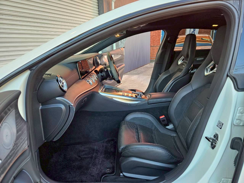 運転しやすく安心の右ハンドル、正規ディーラー車!! ワンオーナー 取説・記録簿付 事故歴ありません!! 綺麗な外装色ダイヤモンドホワイトにフェイスリフトが施工されたGT53専用エクステリア&AMGダイナミックパッケージプラス専用21インチアルミホイールにイエローブレーキキャリパーが迫力有るエクステリアを演出!! 使用感はとても少なく心地良い禁煙の室内は開放感有るパノラミックルーフがオプション設定され、ブラックナッパレザーシート&グレーアッシュウッドインテリアトリムの組み合せにNEWステアリングが装着!! 快適な全席シートヒーターやベンチレーター、ブルメスターサラウンドシステム、エアバランスパッケージと豪華装備に加え後席クライメートコントロールやマルチコントロールシートバックも完備!! 12.3インチワイトディスプレイMBUX搭載ナビに360°カメラ&ヘッドアップディスプレイ、レーダーセーフティパッケージが安全運転を全面的にサポートし事故を未然に防いでくれます!! 直列6気筒ターボエンジン+ISG+4MATIC&電子制御9速AT(9G-TRONIC)にAMG RIDE CONTROL+エアサスペンションやAMGパフォーマンスエグゾーストシステムが相まってダイナミックな走行性と優れた低燃費を実現!! 実用性と先進性を兼ね揃えた人気車輌をお届け致します!!