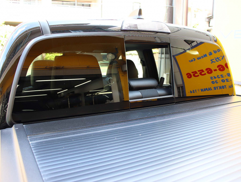 電動スライド式リアウインドウ、RETRAX鍵付きシャッター式トノカバー装備