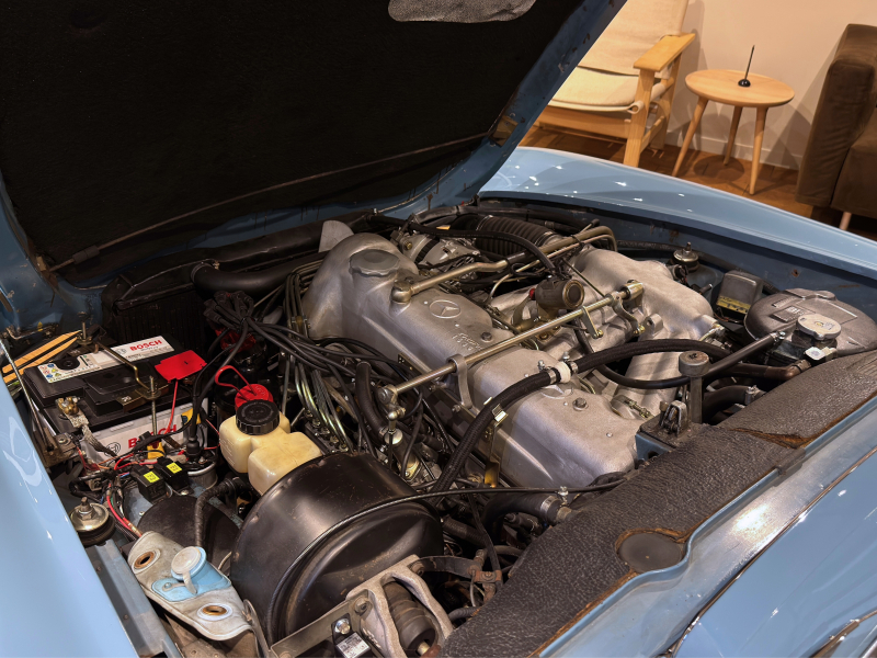 230SLはM127型直列6気筒のエンジンを直立で搭載し、排気量は2306cc、エンジンの圧縮比を9:3と高めにセッティングし最高出力170HP、最大トルク22㎏・mを発揮します。