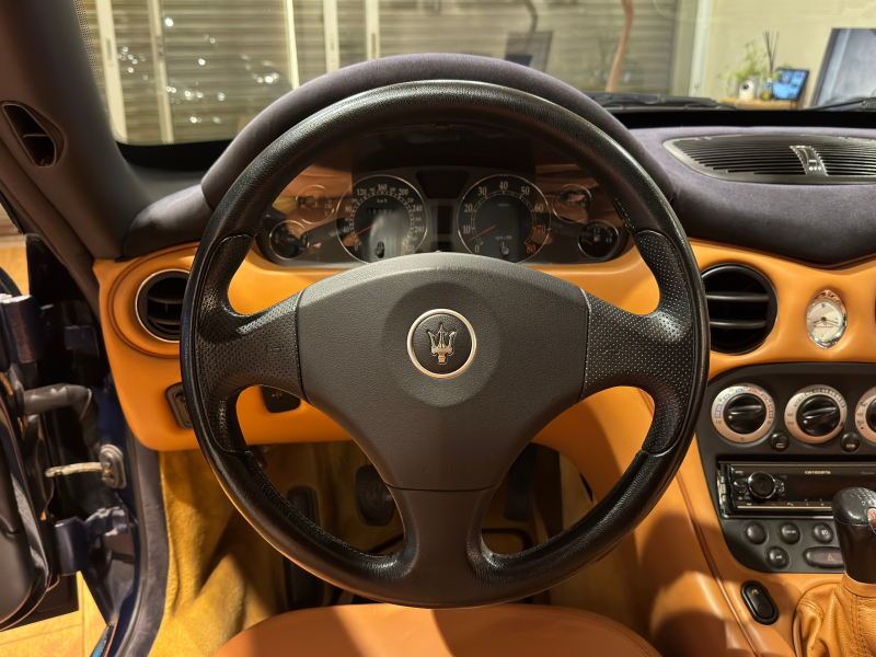外装はマセラティの基本色でもあるブルーネットゥーノの深みのある紺色に、内装はタンレザーで高級感のあるマセラティらしい内装となっております。