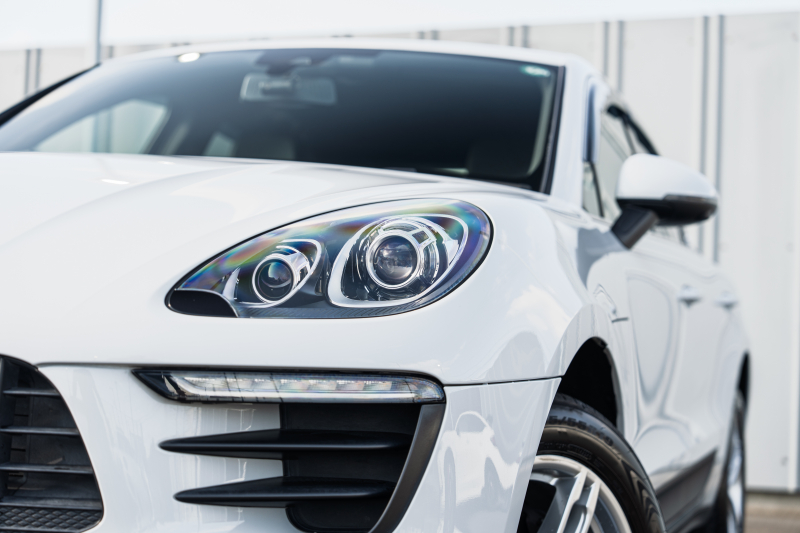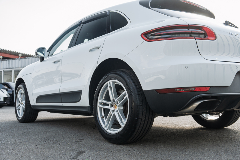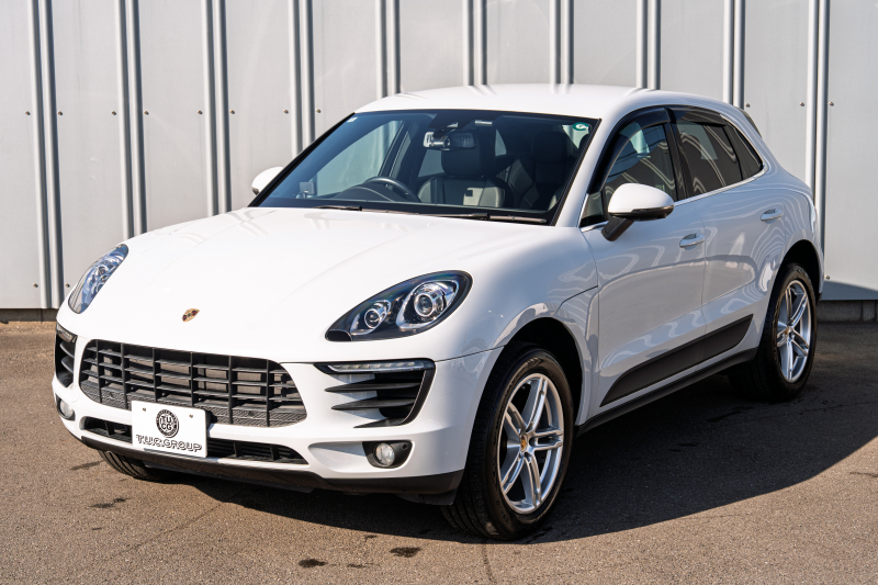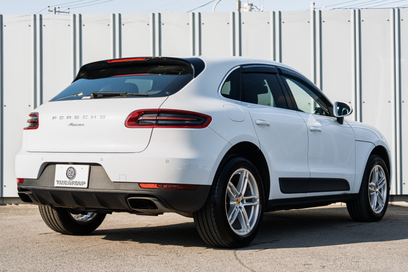 ポルシェ マカン ベースグレード ブラックハーフレザーシート シートヒーター PCMナビ フルセグTV AppleCarPlay PDLS パークアシスト TPM オートテールゲート LDW カラークレストキャップ マカンS19インチAW 2年保証