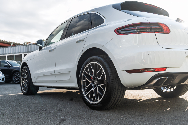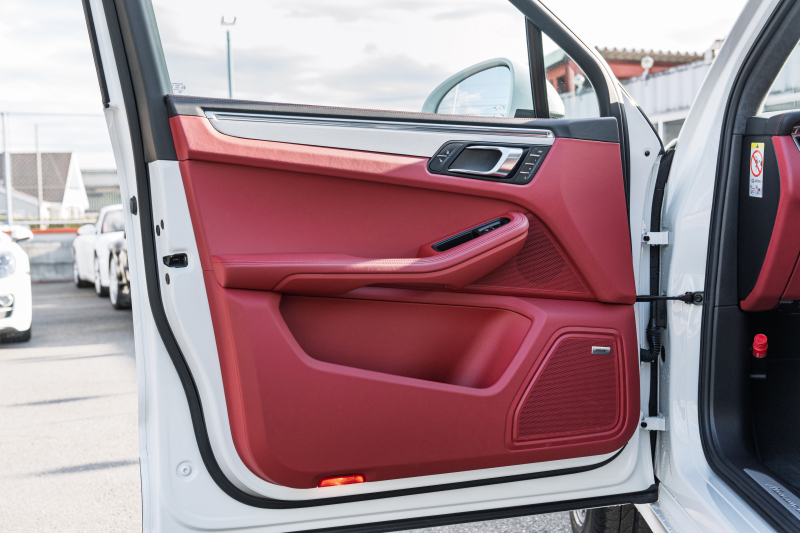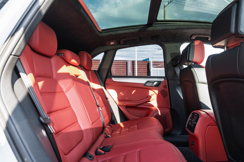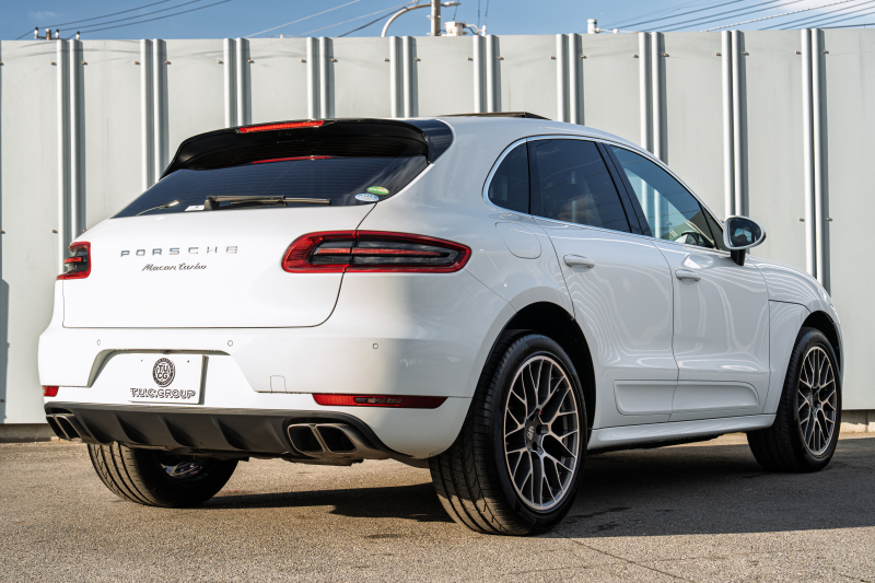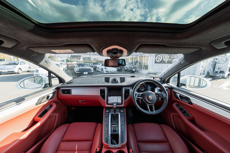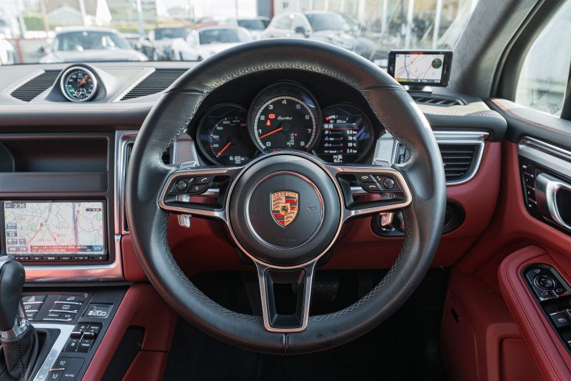 ポルシェ マカン ターボ スポーツクロノPKG ツートンレザーインテリア(ガーネットレッド/ブラック) アダプティブスポーツシート ベンチレーター パノラマサンルーフ ナビTV PASM/エアサス エントリードライブ RSスパイダー20インチAW 2年保証