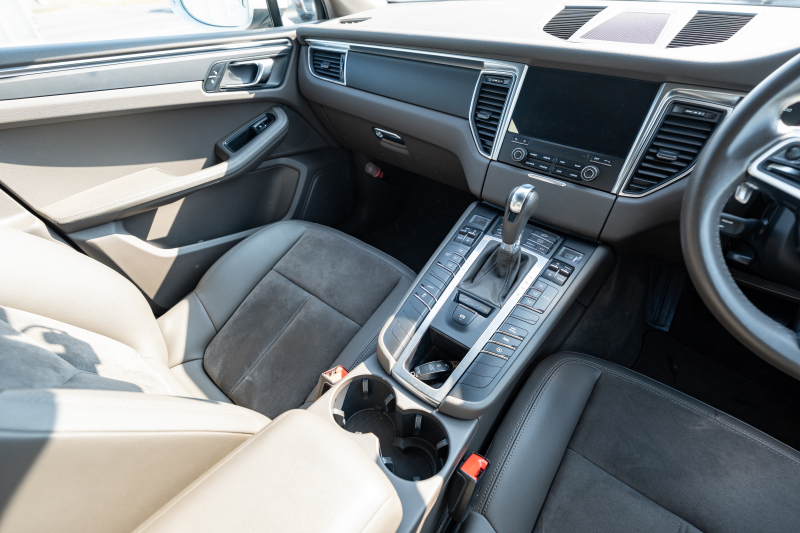 ポルシェ マカン ベースグレード 2017年モデル アゲートグレーハーフレザーシート PCMナビ パークアシスト TPM クルーズコントロール ルーフレール オートテールゲート LDW カラークレストキャップ マカンターボ19インチAW 2年保証