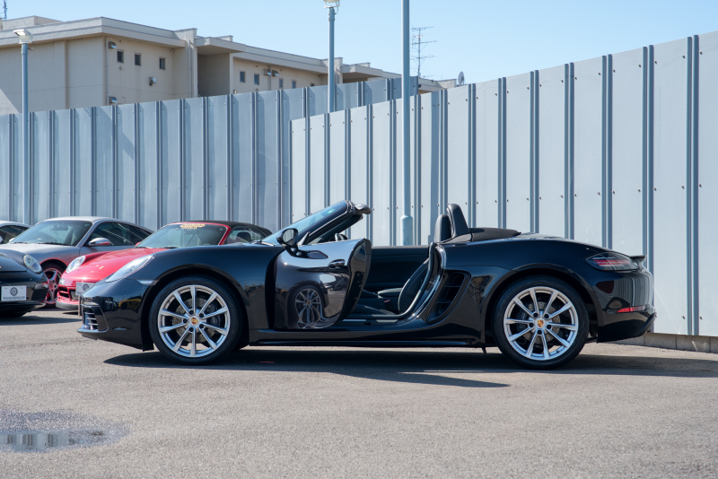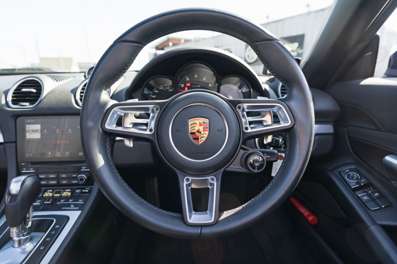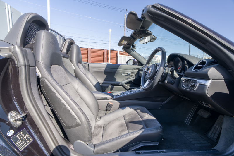 ポルシェ 718 ボクスター ベースグレード スポーツクロノPKG ブラックハーフレザーシート シートヒーター ブラックソフトトップ PCMナビTV CarPlay BOSE GTスポーツステア キセノン オートエアコン TPM パークアシスト 電格ミラー ボクスター18インチAW 2年保証