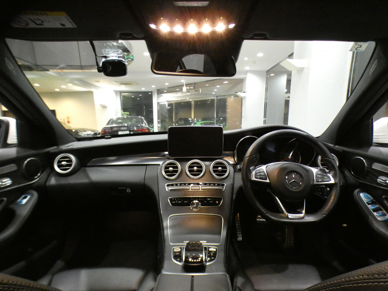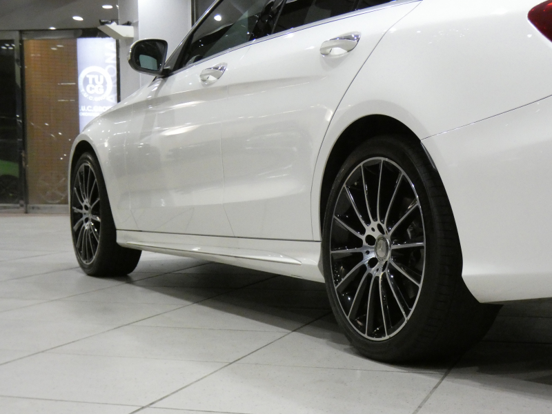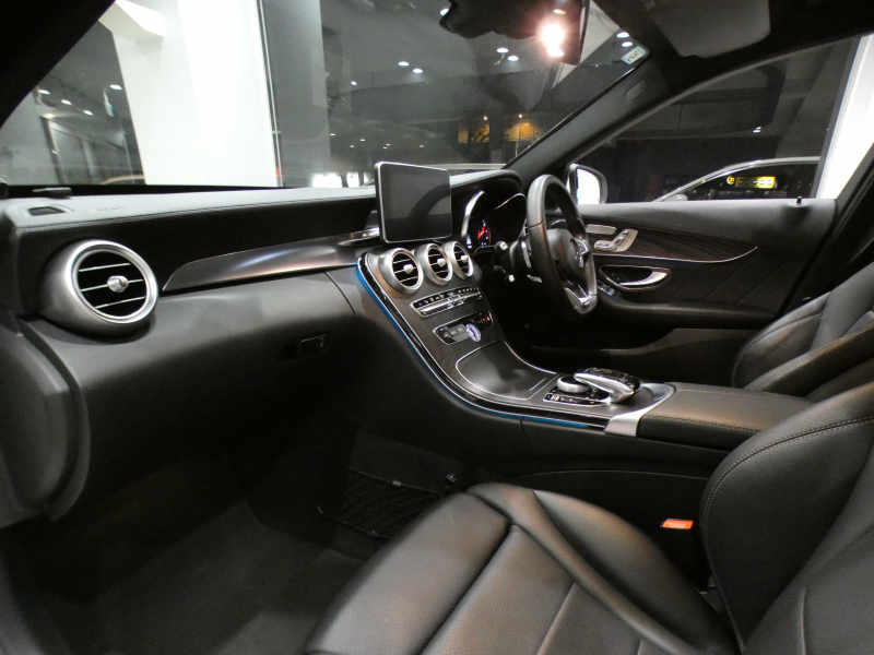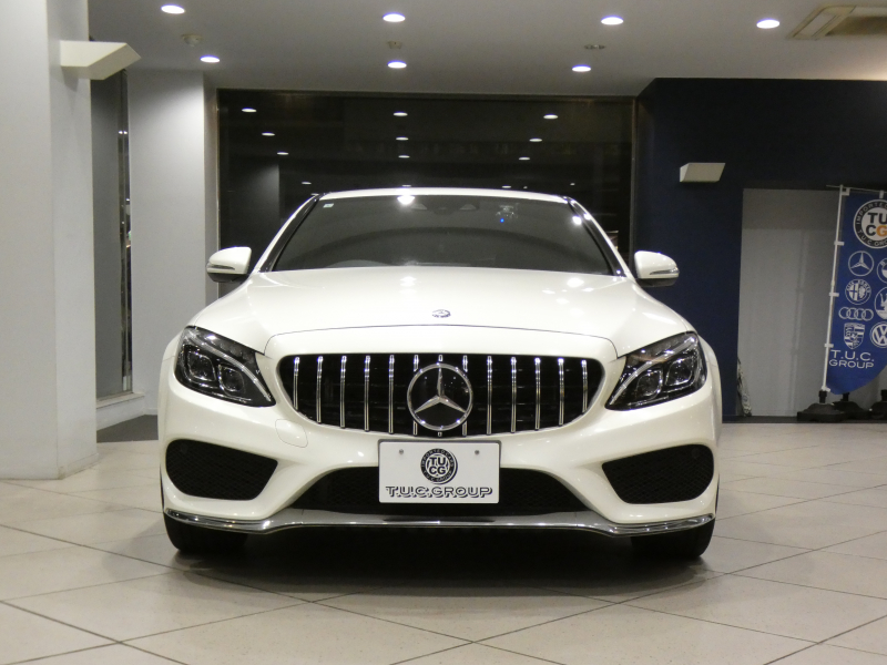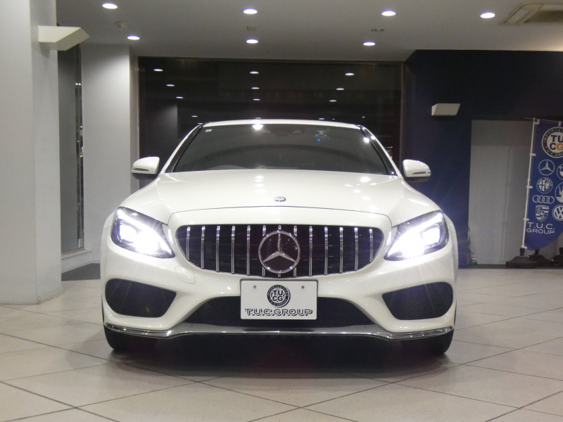 メルセデスベンツ Cクラス C250スポーツ レーダーセーフティPKG キーレスゴー ☆有償色 黒革 ヒーター ナビTV Bカメラ PTS LEDライト アンビエントライト パナメリカーナグリル トランクスポイラー AMGスタイリング&19AW 2年保証