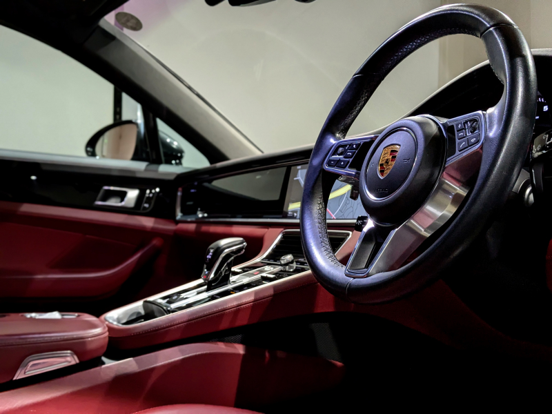 ポルシェ パナメーラ 4 PASM PDLS+ スポーツエグゾースト レッドレザーシート 21インチアルミホイール BSM LKA PCMナビ フルセグTV リアカメラ エントリードライブ ユーザー買取車