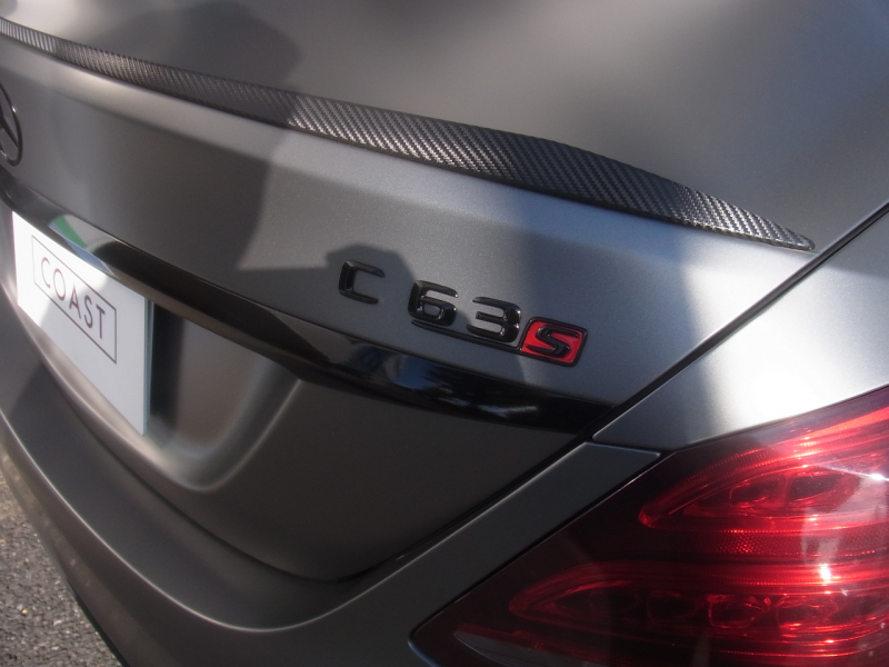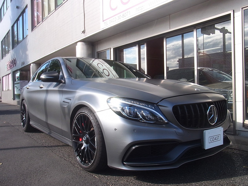 AMG Cクラス C63 S エクスクルーシブPKG パノラミックサンルーフ 鍛造19AW 車検対応Akrapovicチタンマフラー KW製車高調 マットグレーラッピング エアバランスPKG 純正ナビ TV 360カメラ