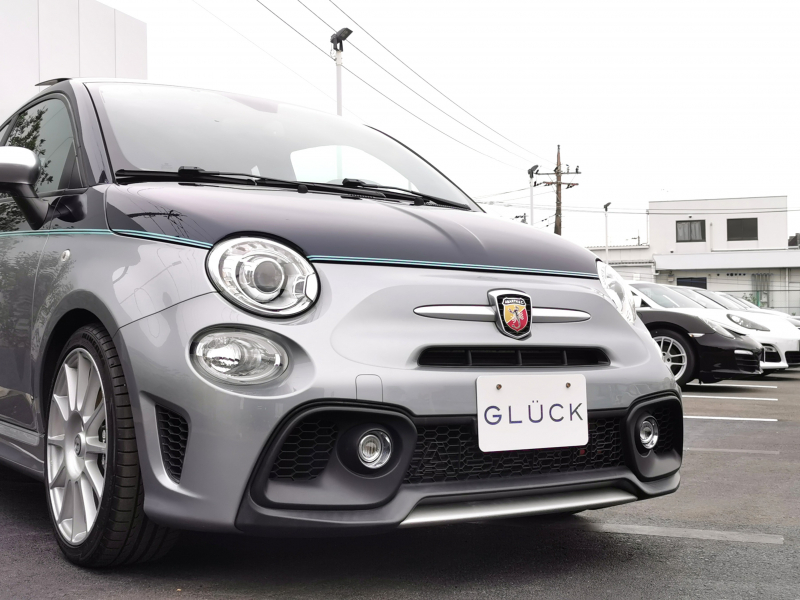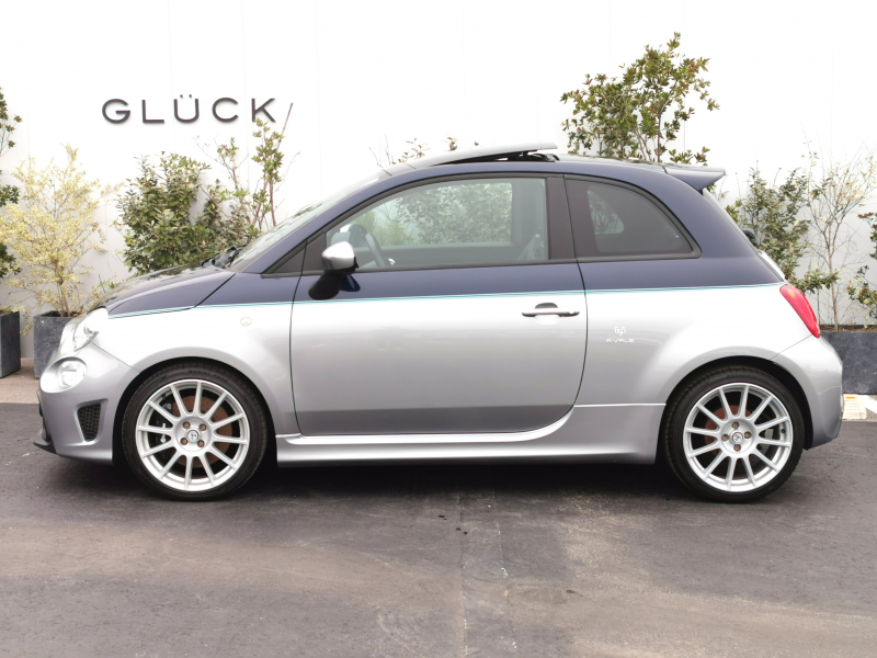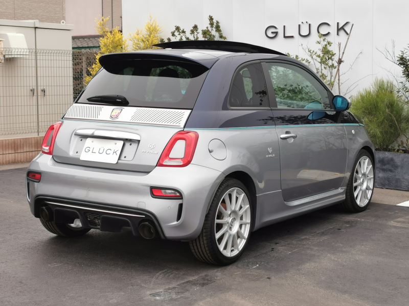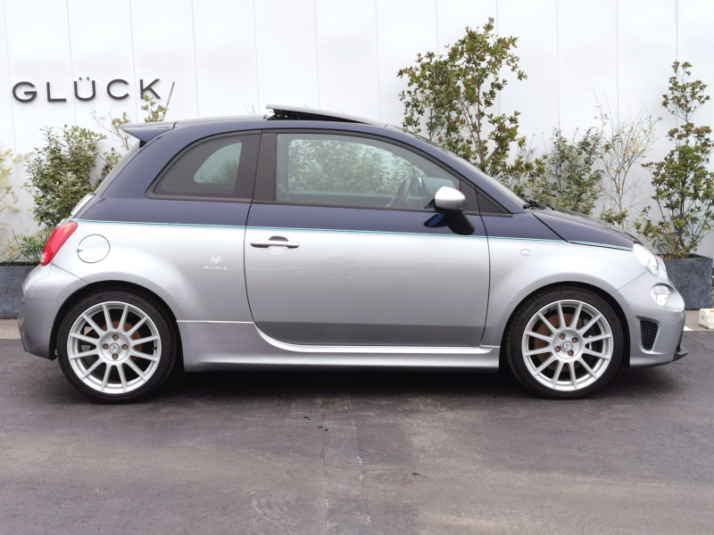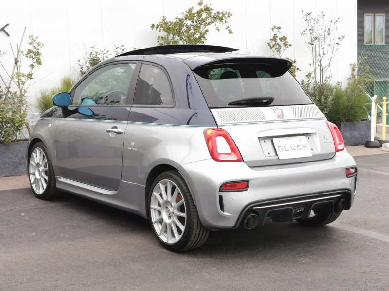 アバルト 695 RIVALE 本国仕様 ガラスルーフ アクラポビッチマフラー 専用ウッドパネル ガラスルーフ ナビ フルセグ バックカメラ 5MT 専用17インチアルミホイール ブルーレザー TFTメーター ブレンボキャリパーKONI製FSD