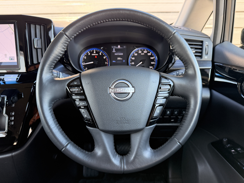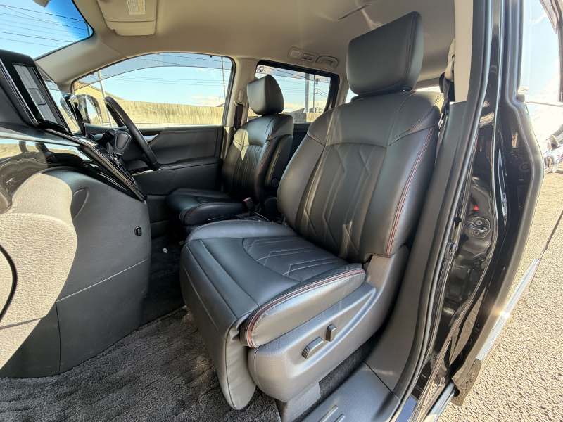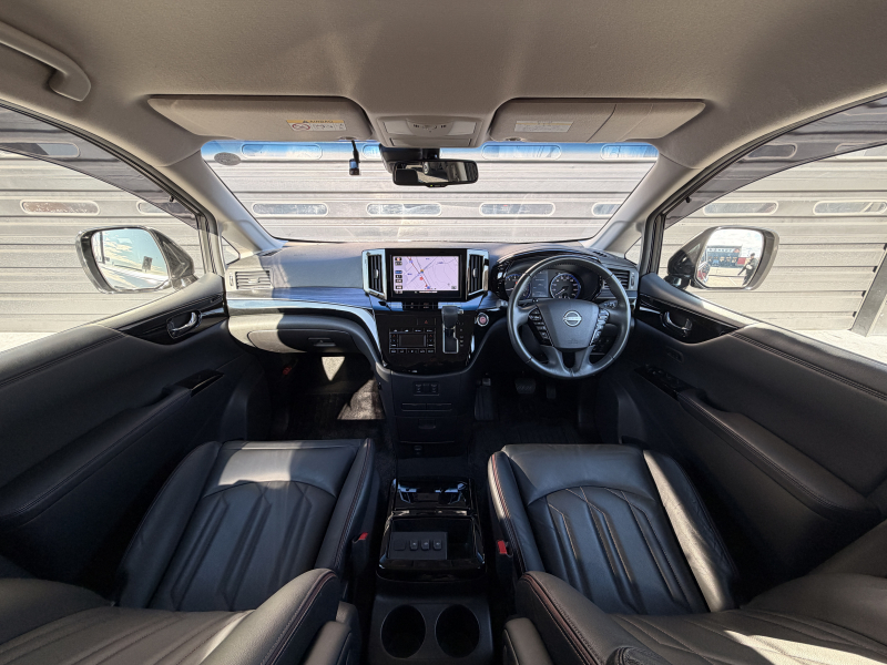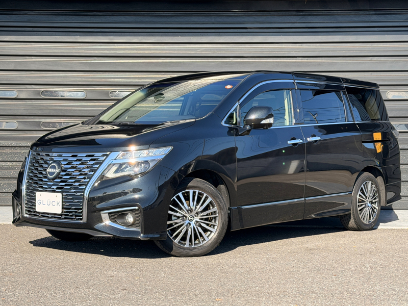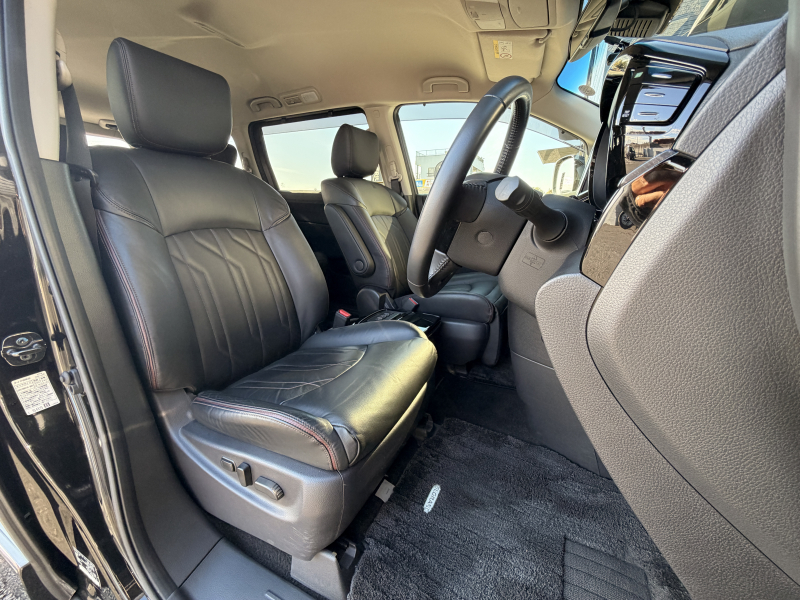 日産 エルグランド 2.5 250ハイウェイスター プレミアム 1オーナー 禁煙車 黒革 ヒーター付電動フロントシート 運転席シートメモリー 360度カメラ 両側パワースライドドア オットマン パワーテールゲート 純正ドラレコ前後 2列目シェード ACC 純正18AW デジタルTV