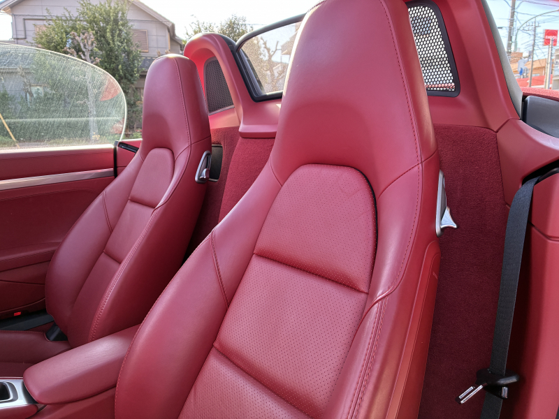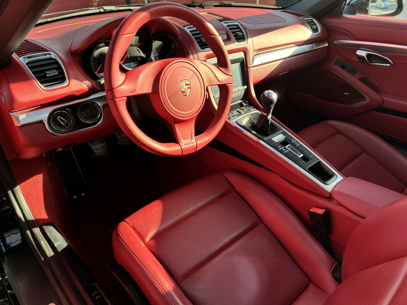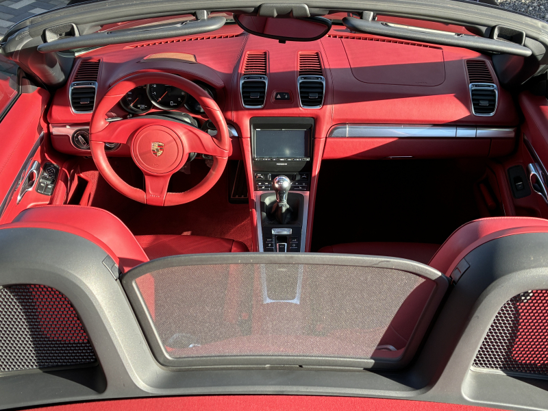ポルシェ ボクスター(Type981) ボクスター 左ハンドル 6速MT 赤革 純正ナビ バックカメラ 2Way電動シート レッドソフトトップ 純正18インチA/W 電動格納ドアミラー SPORTモード バイキセノンヘッドライト スポーツシート ブラックキャリパー