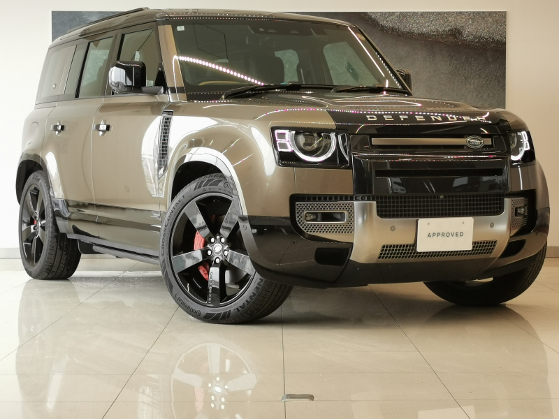 ランドローバー ディフェンダー 110X 3.0L D300 4WD 7名 ワンオーナー ファミリーコンフォートパック 3ゾーンクライメートコントロール 空気清浄システムプラス マニュアル3列目ヒーター付シート 22インチスタイル5098グロスブラック 22インチスペアホイール 禁煙車 電動サイドステップ コールドクライメートコンビニエンスパック