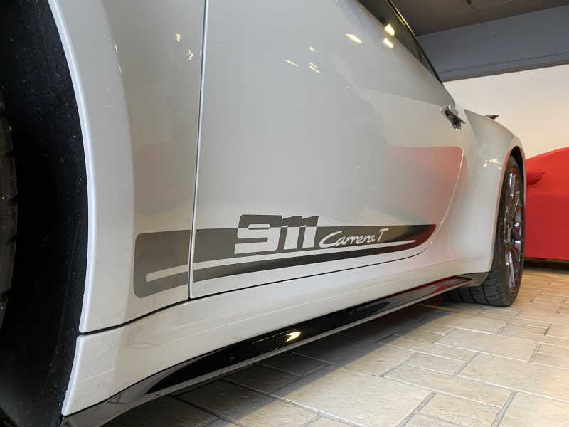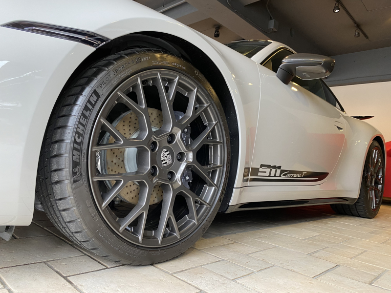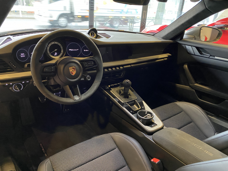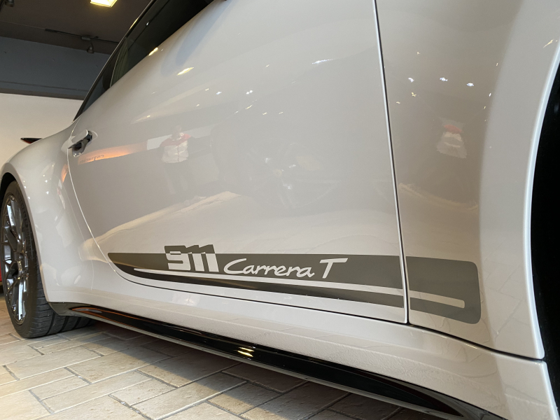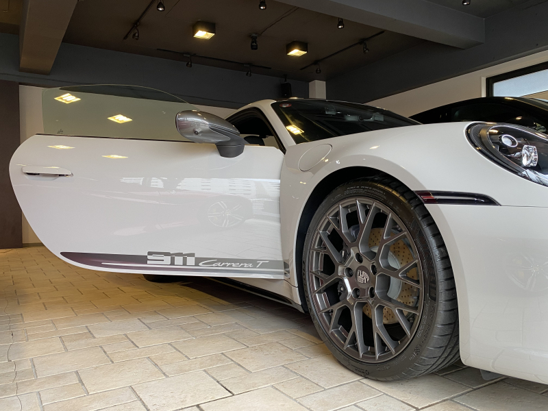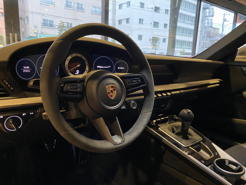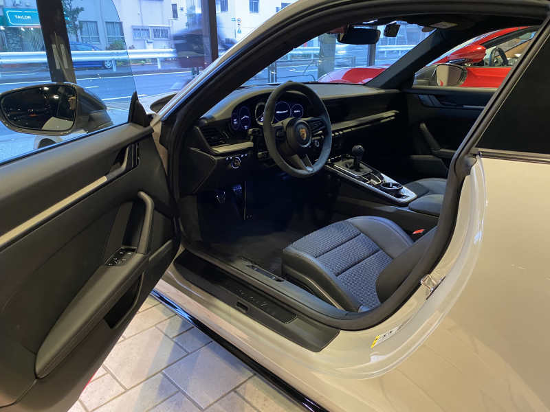 ポルシェ 911(Type992) CarreraT 7MTエアロキット軽量カーボンルーフLEDヘッドライト リアアクスルステアリング メーター&スポクロ×ホワイトRace-TexGTステアリングRSスパイダーAW 新車保証継承OP合計389万円