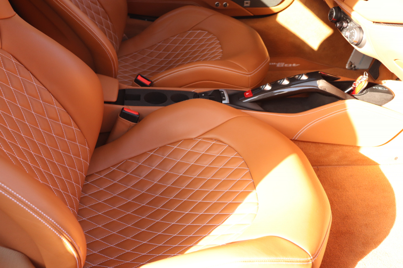 本個体はビアンコ・イタリアのボディにクオイオ4609のインテリアというフェラーリらしさと品の良さが共存する組み合わせで仕立てられています。