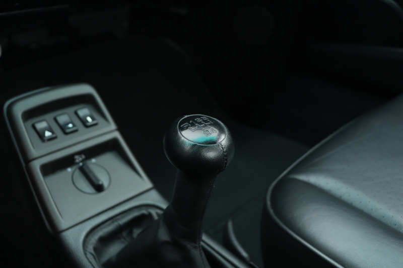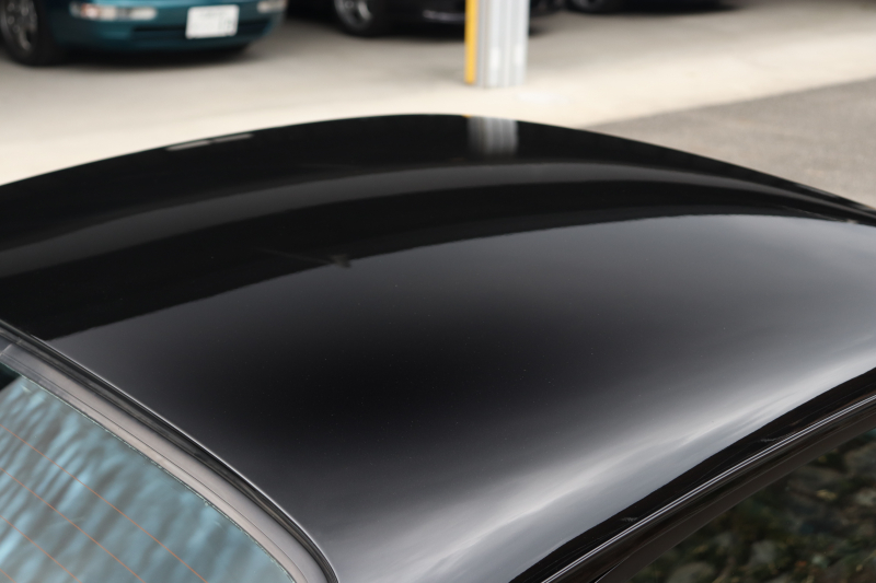 サンルーフレス仕様ブラックメタリックの外装にブラックレザー内装、MTという組み合わせ。