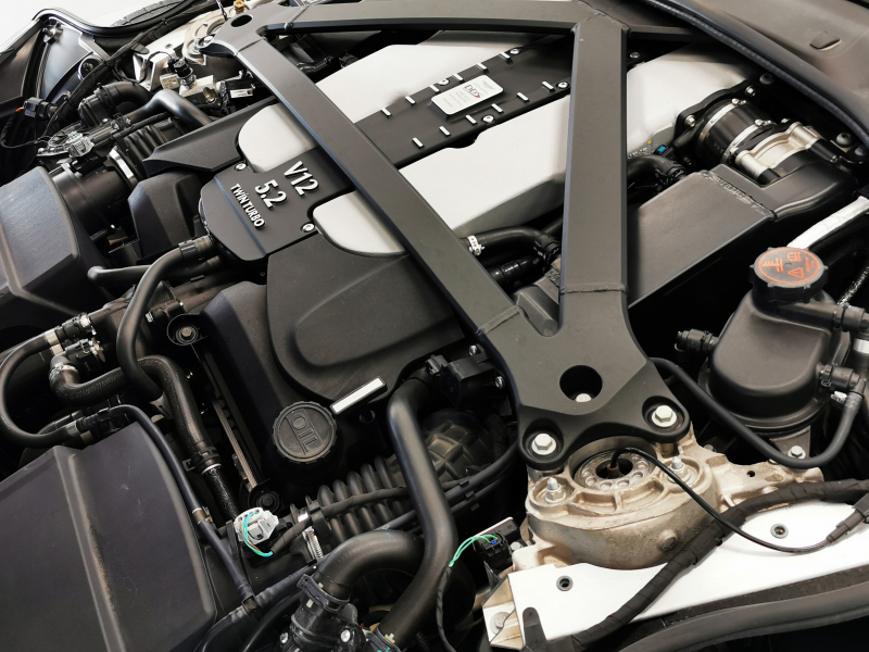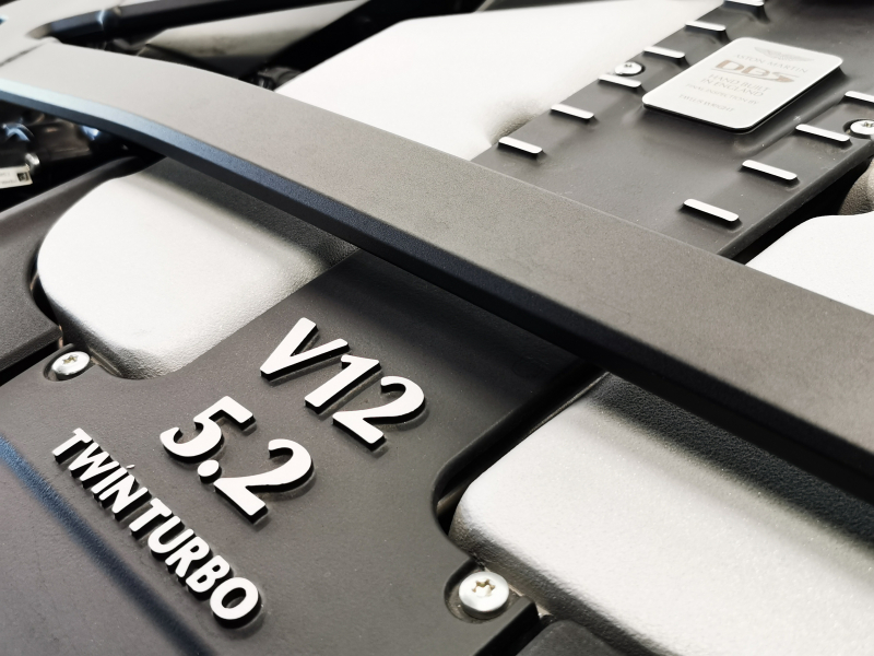 心臓部には、年々希少性が増しているV12エンジンがフロントミッドシップ位置に鎮座。こちらのV12エンジンはイギリス・ゲイドンにある自社工場にて設計・開発・製造のすべてを行っており、組み立ては1基ずつ職人が手作業で行います。