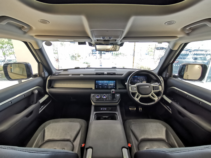 ランドローバー ディフェンダー 110 SE 2.0L P300 AWD 黒革シート 7人乗り サンルーフ フロントシートヒーター&クーラー 電子制御エアサスペンション MERIDIANサウンド フィックスドサイドステップ クリアサイトインテリアリアビューミラー 3ゾーンクライメートコントロール