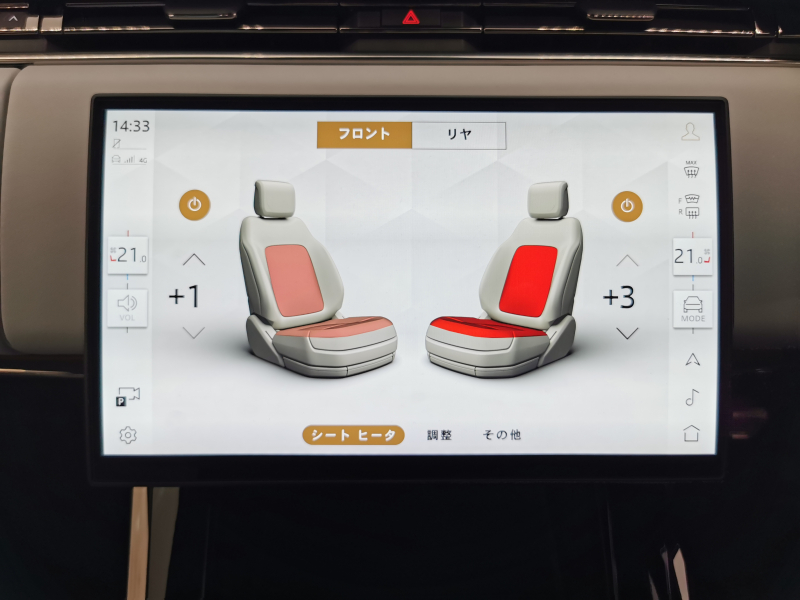 フロント、リアシートに3段階調整可能なシートヒーターが内蔵されております。寒い日でも快適にドライブが楽しめます。