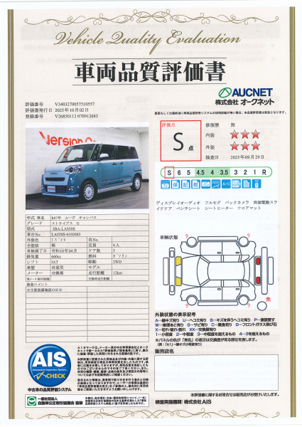 【AIS車両品質評価書付】