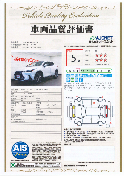 【AIS車両品質評価書付】