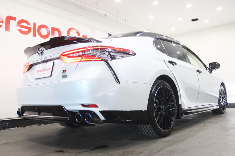 トヨタ カムリ WS レザーパッケージ 全国3年保証付 ワンオーナー 禁煙車 JBL TRDエアロ トランクスポイラー TRD19AW 全周囲カメラ 社外柿本改マフラー TRDドアハンドルプロテクター メモリーナビ HUD ワイヤレス充電