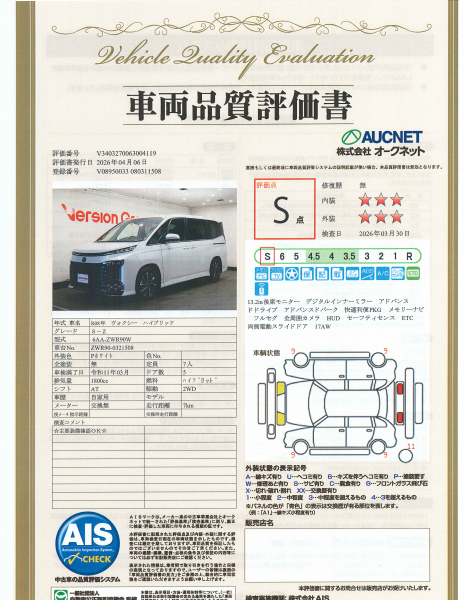 【AIS車両品質評価書付】