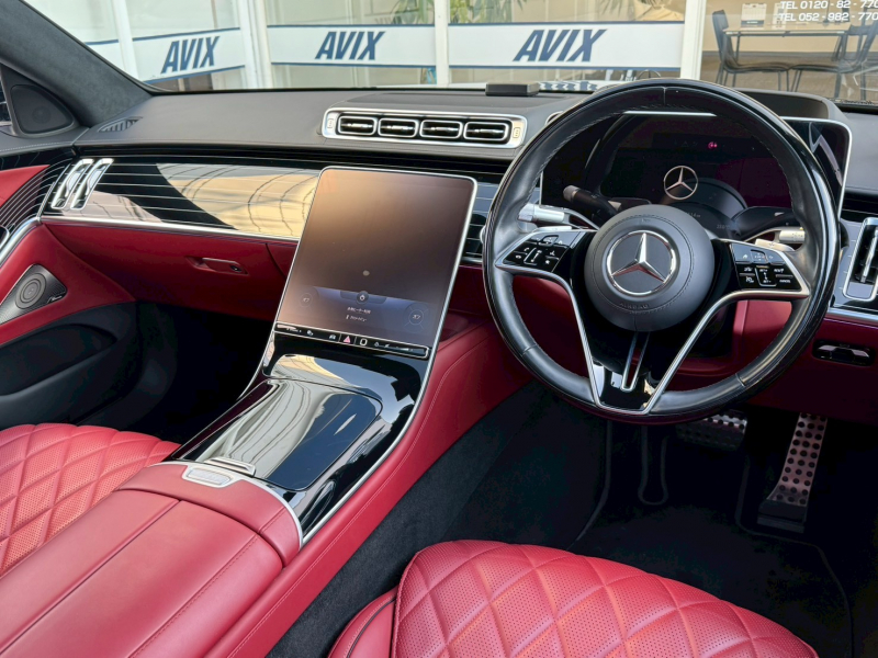 メルセデスベンツ Sクラス S580 4MATIC ロング(ISG搭載モデル) AMGライン レザーエクスクルーシブ E-アクティブボディーコントロール EXC専用インテリア 3Dコックピット&AR-HUD 右H 赤革 パノラマSR ACC Burmester MBUXナビTV 全周カメラ ヒーター&ベンチレーション マルチコントロール CarPlay 禁煙