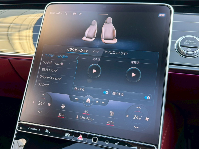 ●メモリー付パワーシート(運転席・助手席)●メモリー付パワーシート(後席)●パワーシート(後席)●トランクスルー機能●指紋認証機能●シートヒーター(運転席・助手席)●シートベンチレーター(運転席・助手席)●シートヒーター(後席)●シートベンチレーター(後席)●ヘッドアップディスプレイ●クライメートコントロール(前席左右独立調整)●MBUXインテリア・アシスタント●12.8インチ有機ELメディアディスプレイ●アンビエントライト●ロードコンバートメントパッケージ●ロードシルプロテクター(ステンレス)●メモリーパッケージ●ウォームコンフォートパッケージ[アームレストヒーター(後席)、アームレストヒーター(前席)、ステアリングヒーター]●MBUX ARナビゲーション●電動ランバーサポート(運転席・助手席)●イルミネーテッドステップカバー●12V電源ソケット